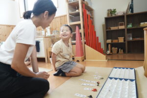 国際モンテッソーリ協会(AMI)の基準に基づいた教具を取り揃え、子どもたちが「自分で選び、自分で取り組む」ことのできる環境を整えます。